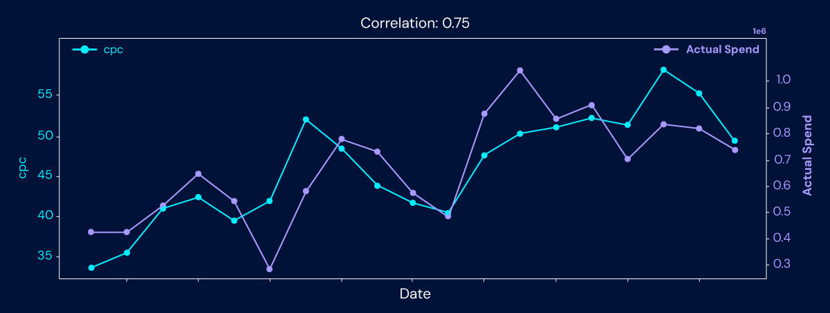 Figure 1: CPC vs. actual spend for the AI-optimized group.