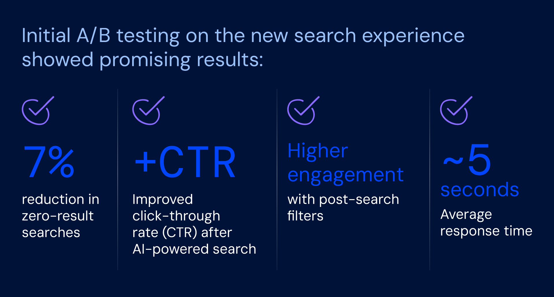 After our collaboration, MODO continued evolving SearchAI and enhanced the search engine by incorporating semantic search. This optimization reduced LLM calls, improving latency, cost efficiency, and overall scalability, ultimately enabling the product to scale in production.