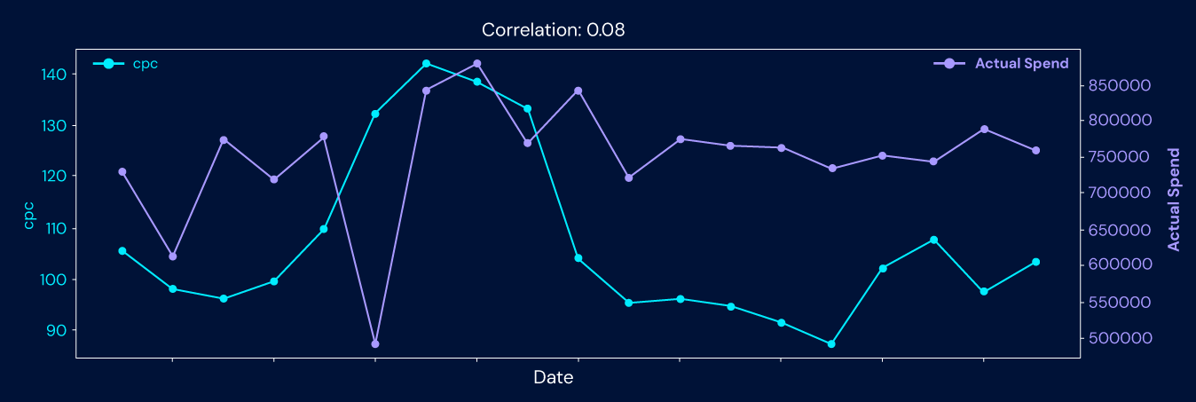 Image Description: CPC vs Actual spend for the AI-Optimized group.